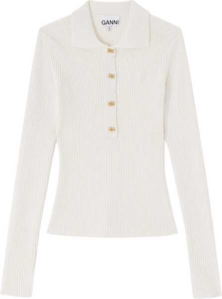 Culoare: IVORY Ganni Ribbed Polo Shirt IVORY
