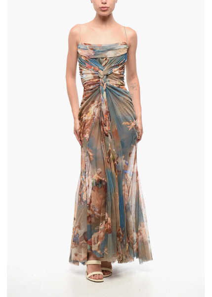 Patterned Draped Tulle Maxi Dress - Descriere