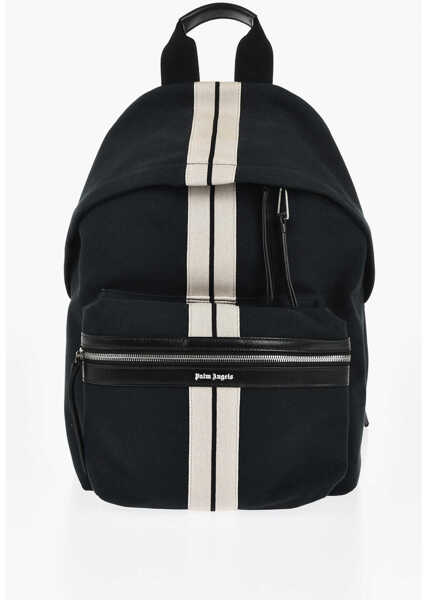 Palm Angels Maxi Cotton Backpack With Leather Trim