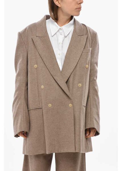 Double-Breasted Virgin Wool Blazer With Peak Lapel - Descriere