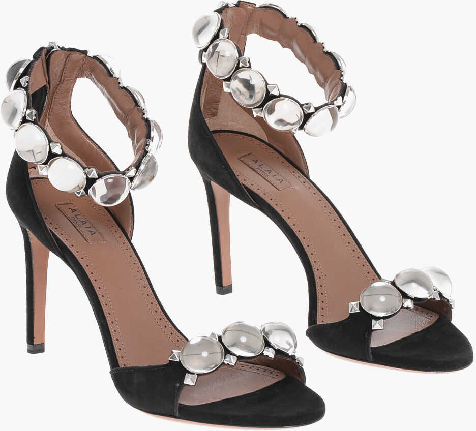 - Calitate la Alaïa Rhinestoned La Bombe Suede Sandals 9Cm pe B-mall!