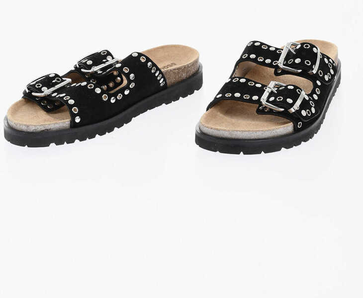 DSQUARED2 Suede Double Buckle Sandals With Studs