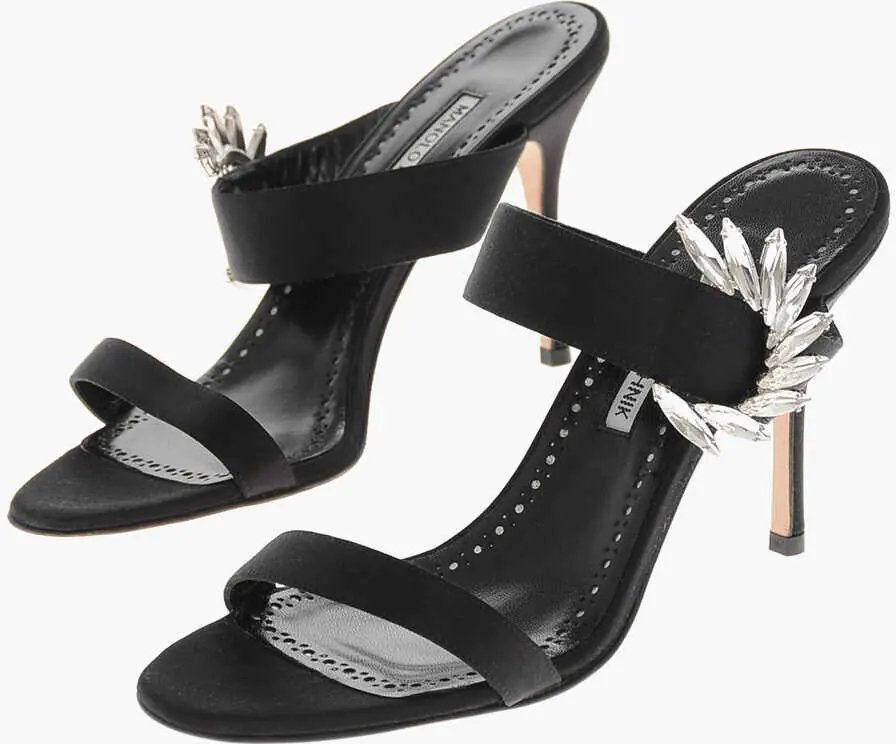 Culoare: Black Manolo Blahnik Satin Sandals Chivela With Jewel Detail 10Cm Black