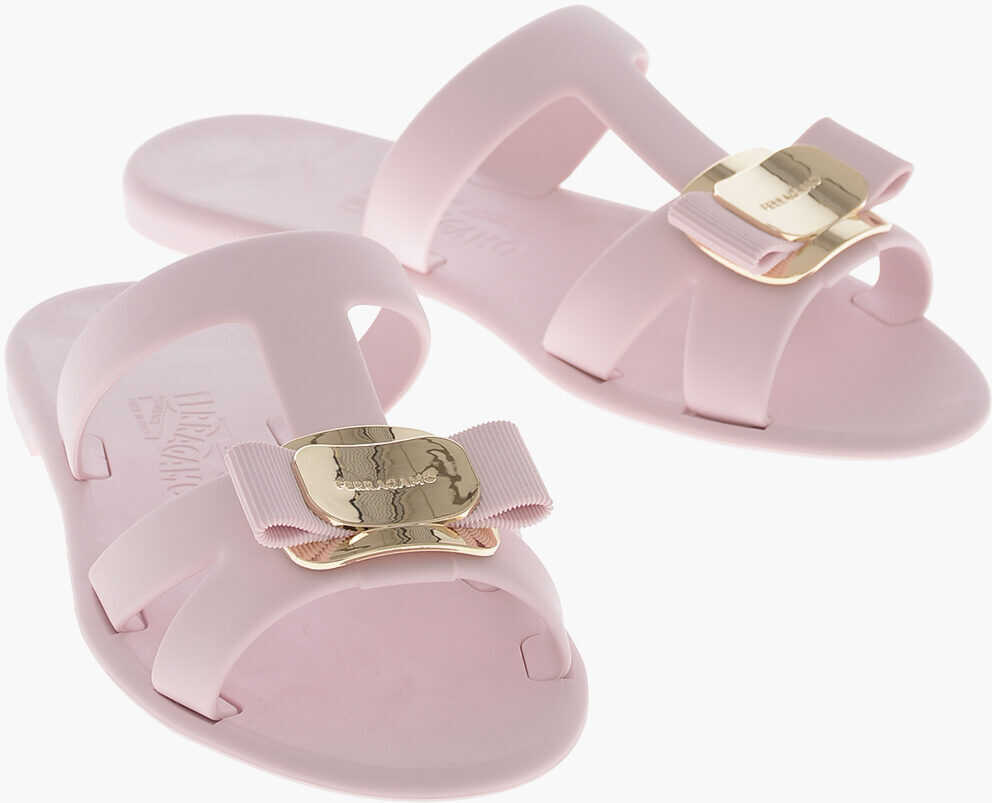 - Calitate la Salvatore Ferragamo Rubber Slides Lilou With Logo Bow pe B-mall!