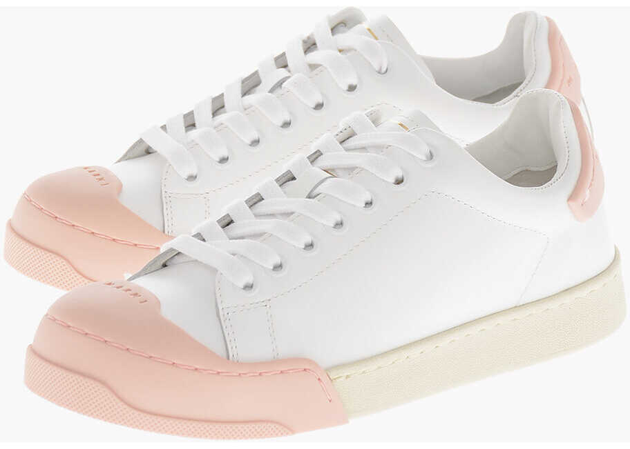 Culoare: White Marni Low Leather Sneakers With Contrasting Rubber Toe Cap White