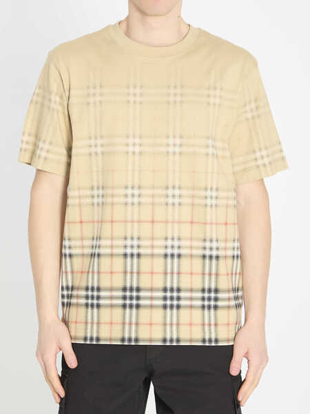 Culoare: BEIGE Burberry Check Fade Cotton T-Shirt BEIGE