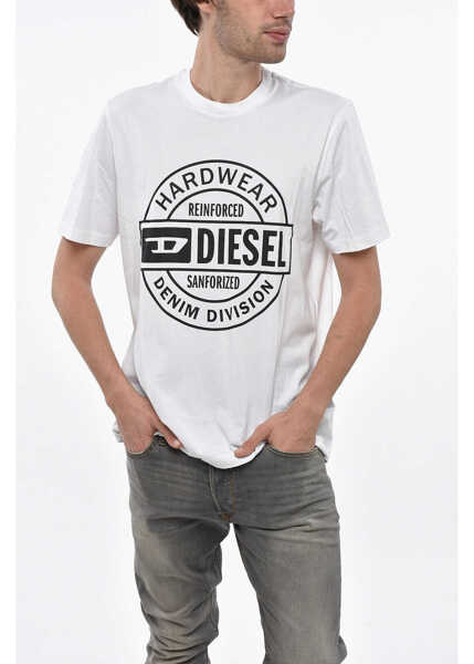 Culoare: White Diesel Crew Neck Hard Wear T-Shirt With Front Print White