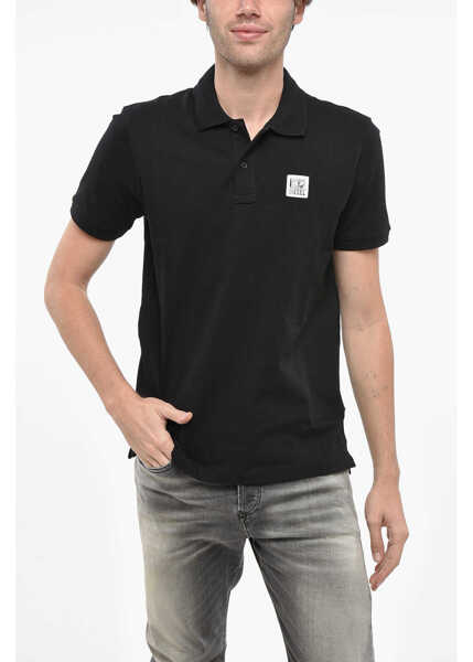 Culoare: Black Diesel Hopsack Cotton Blend Smith Polo With Logo Patch Black