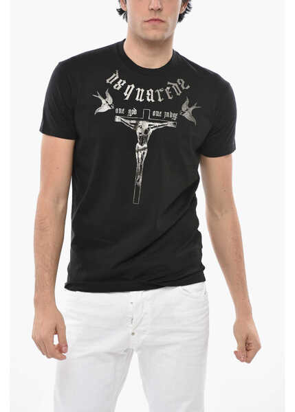 Fie ca vrei sa cumperi pentru tine sau pentru a oferi cadou produsul DSQUARED2 Crewneck Cotton T-Shirt With Lamé Print ii poti intreba pe operatorii nostri detaliile legate despre Imbracaminte Barbati.