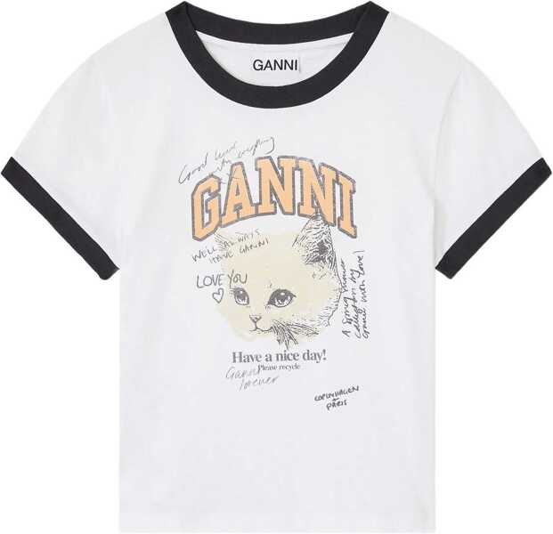 Culoare: WHITE Ganni T-Shirt "Kitty" WHITE