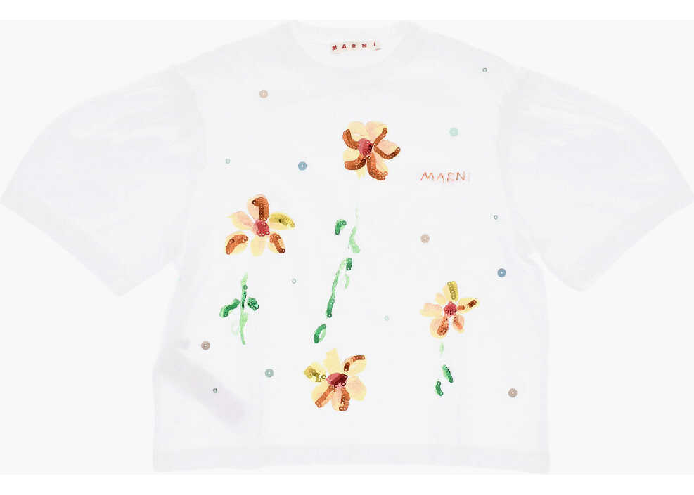 Tricou Marni Floral Patterned Crew-Neck T-Shirt With Sequins Details Baieti