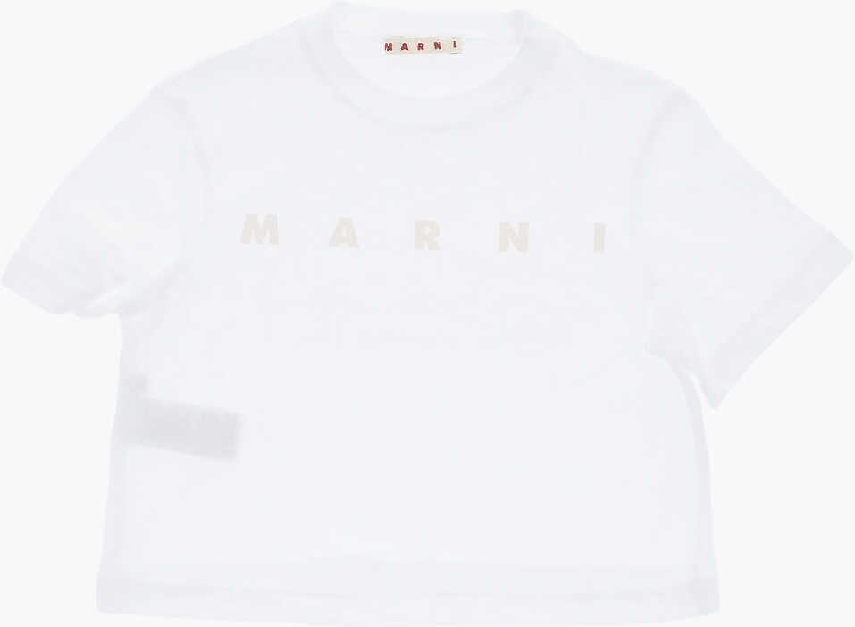 Culoare: White Marni Solid Color Crew-Neck T-Shirt With Glittery Logo White