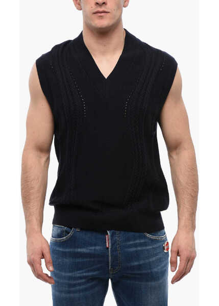Viktor & Rolf Cable Knit Cotton Blend Vest With V Neck